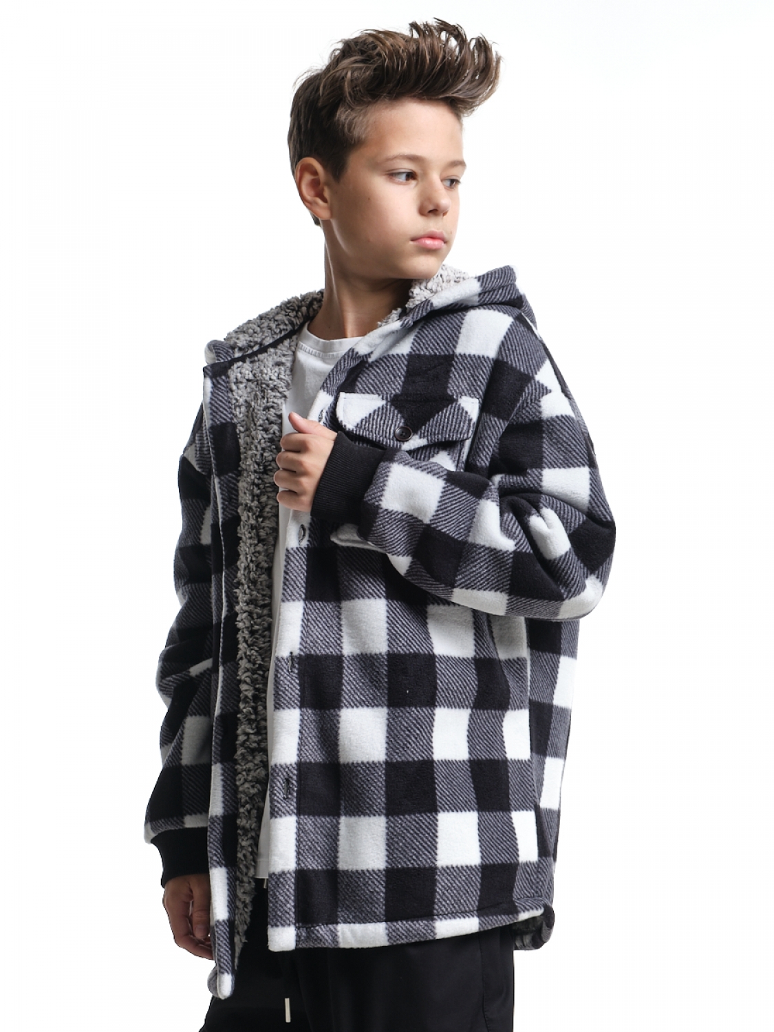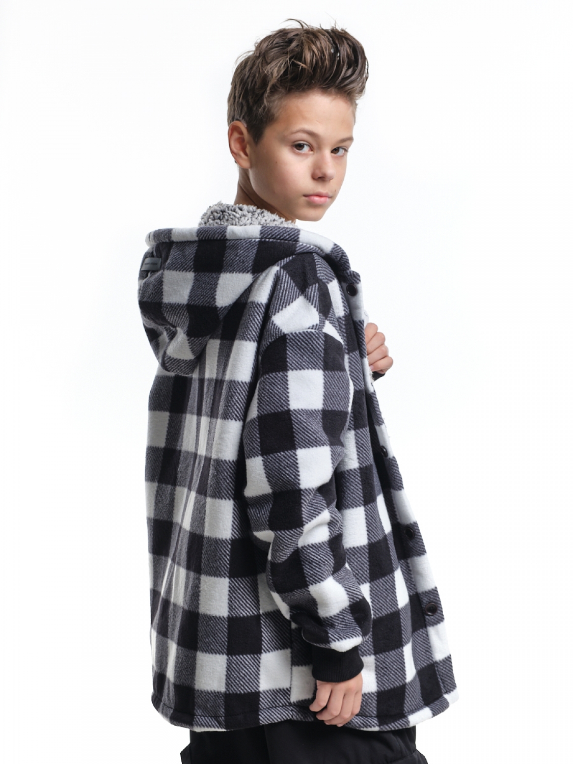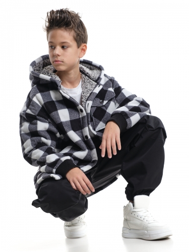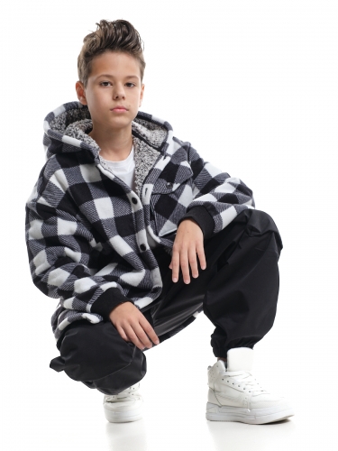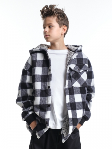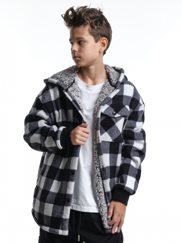 Куртка на меху на пуговицах (152-164см) UD 8044-1(4) черн-белая клетка
