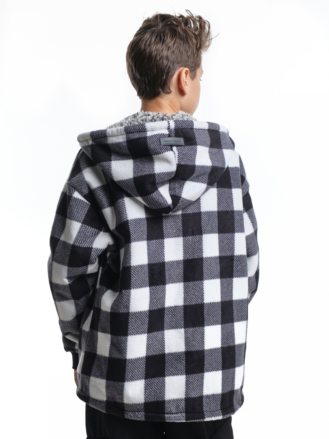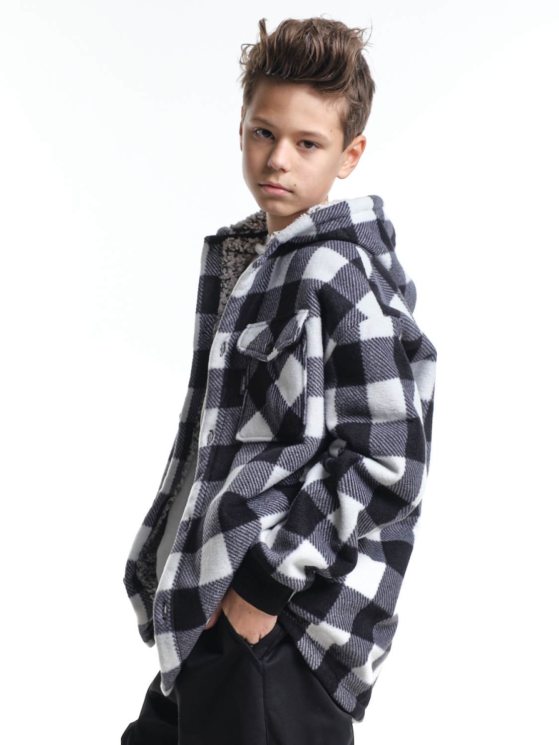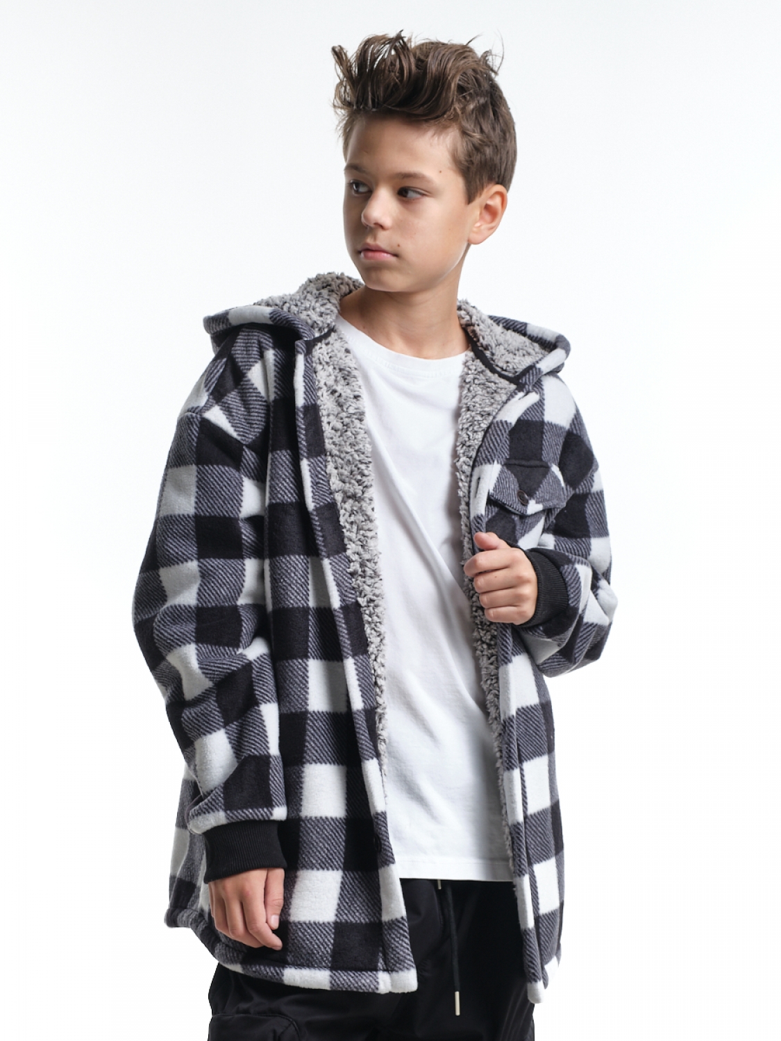 Куртка на меху на пуговицах (152-164см) UD 8044-1(4) черн-белая клетка