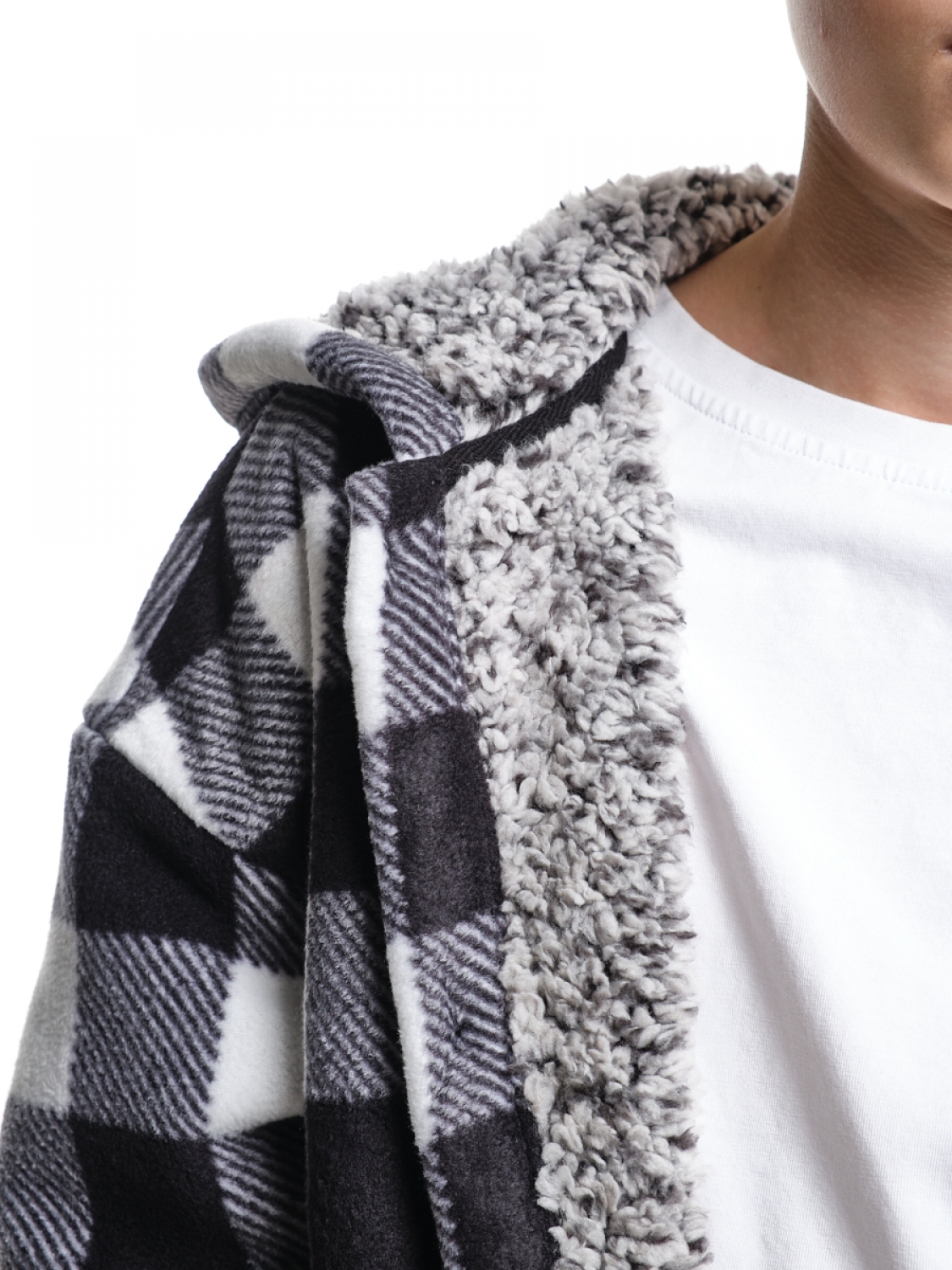 Комбинированное полотно текстиль клетка из окрашенной пряжи с мехом на изнаночной стороне.