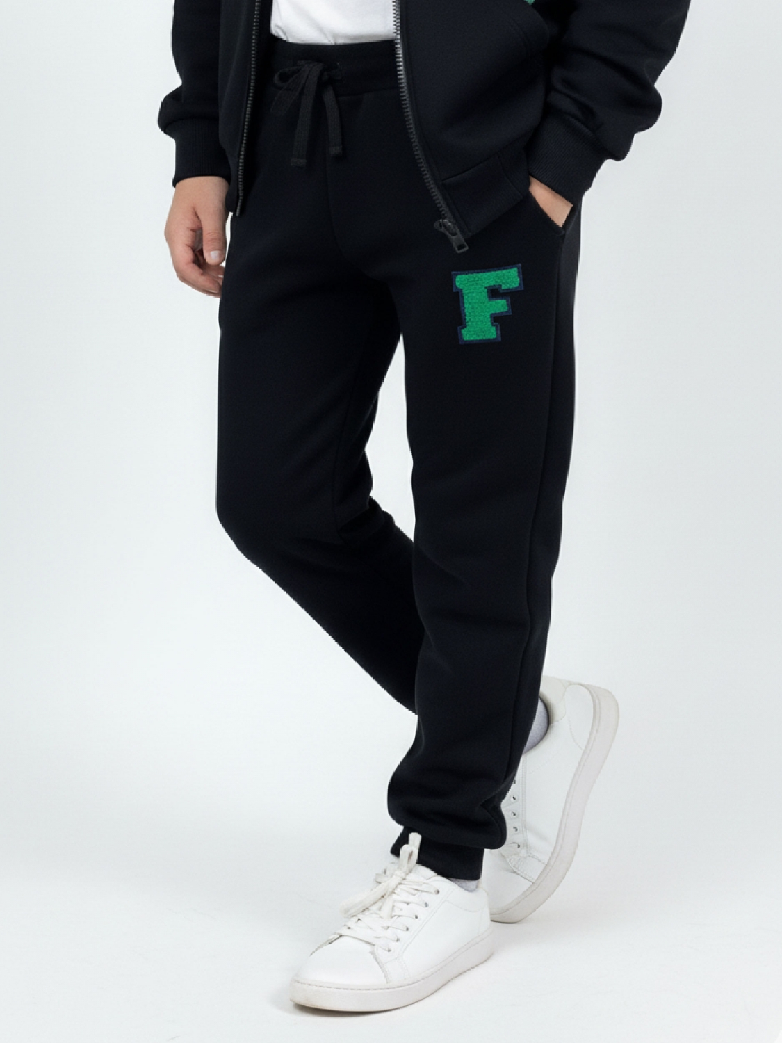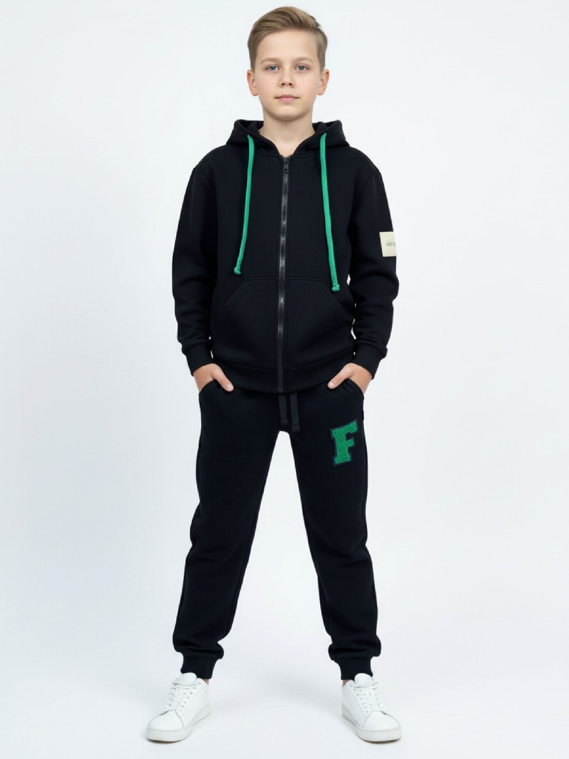 Брюки для мальчика (128-146см) 22-7313-1(3) черный|зеленый