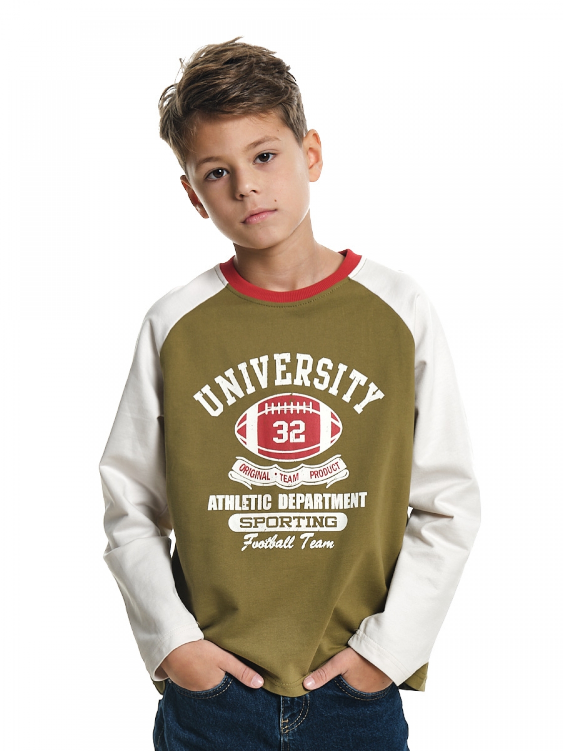 Лонгслив с принтом (122-146см) 22-0225-2(3) хаки