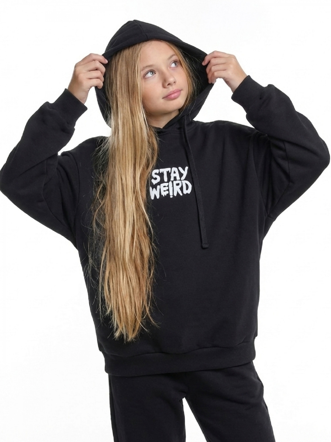 Толстовка худи с принтом (152-164см) 22-5264-1(4) черный