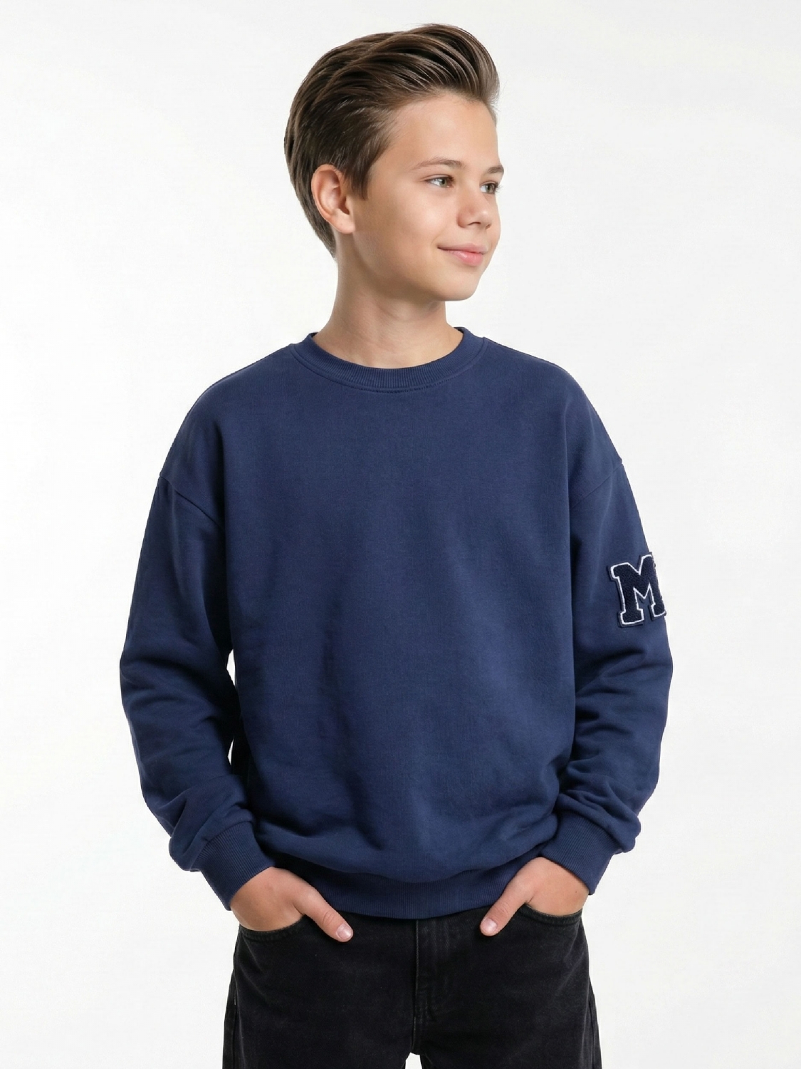 Свитшот для мальчика с шевроном (128-146см) 22-3622-1(3) синий
